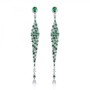 Par aros linea premium, largos, piedras verdes y blancas